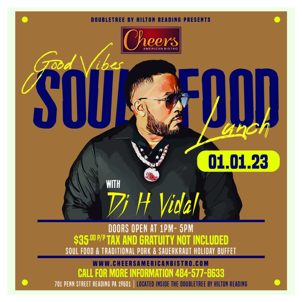 Jan. 1, 2023 Good Vibes Soul Food Lunch Buffet Celebrate the New Year with your loved ones while enjoying our delicious Soul Food Buffet and award-winning service! On January 1, 2023 the Celebration starts at 1 pm with Dj Hamilton Vidal. MENU BUFFET Salad Bar Mixed Greens with Toppings Carrots, Tomatoes, Cucumbers Assorted Dressings Soups […]